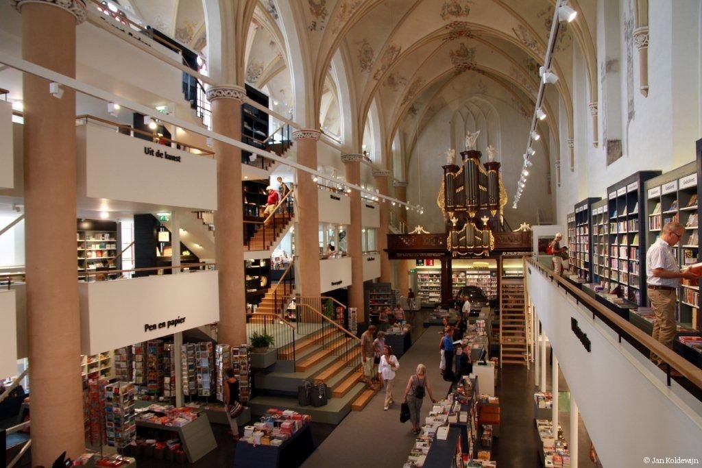 Beleving. Dat is het credo van de boekhandel anno nu. Veranderd leesgedrag en de opkomst van webwinkels hebben ervoor gezorgd dat steeds minder klanten hun boeken in de winkel kopen. Om het tij te keren werden boekhandelaren gedwongen het roer drastisch om te gooien. De boekverkoper in mijn woonplaats kwam met een goed doordacht marketingconcept. Hij verplaatste zijn boekhandel, gevestigd in een modern pand, naar een middeleeuwse kloosterkerk. Het gebouw werd stijlvol gerestaureerd en nu staan de boeken, als soldaten in het gelid, overzichtelijk gerangschikt onder de gewelven. Niet alleen het gebouw maar ook de formule werd aangepast. Het kopen van boeken gaat nu hand in hand met ontmoeting en vermaak. In een zijbeuk van de kerk is hiertoe een fraaie ruimte gecreëerd voor een cultuur- en horecagedeelte.